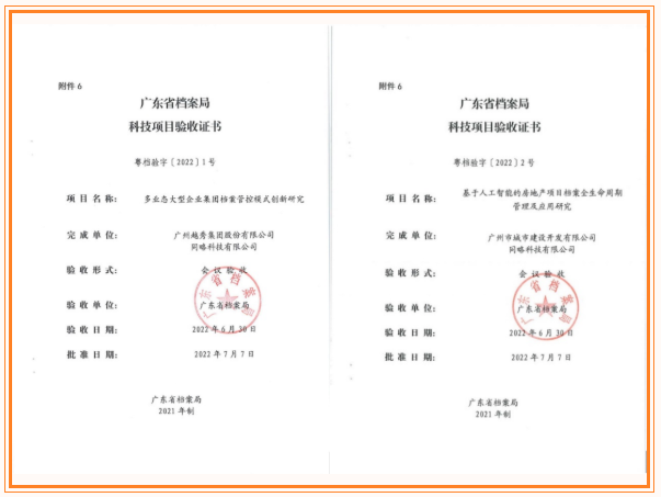 近日,集团总部《多业态大型企业集团档案管控模式创新研究》项目和F66永乐地产《基于人工智能的房地产项目档案全生命周期管理及应用研究》项目通过省档案科技项目验收,两个项目获得专家组充分肯定,成为省档案局科技项目管理办法修订后首批通过科技验收的项目。